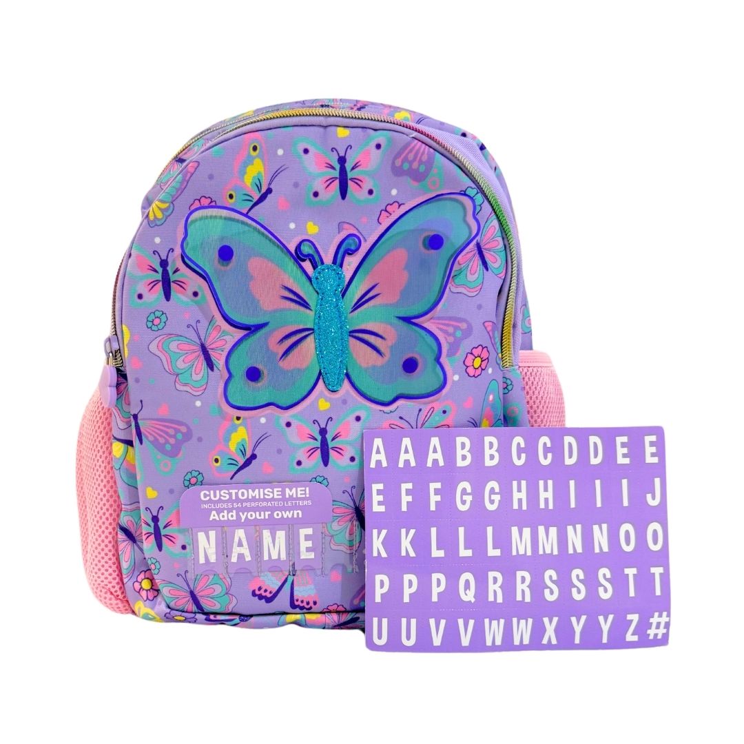 Customize Name Kids Backpack(Single Zip) - Butterfly - Girls